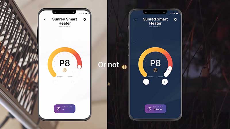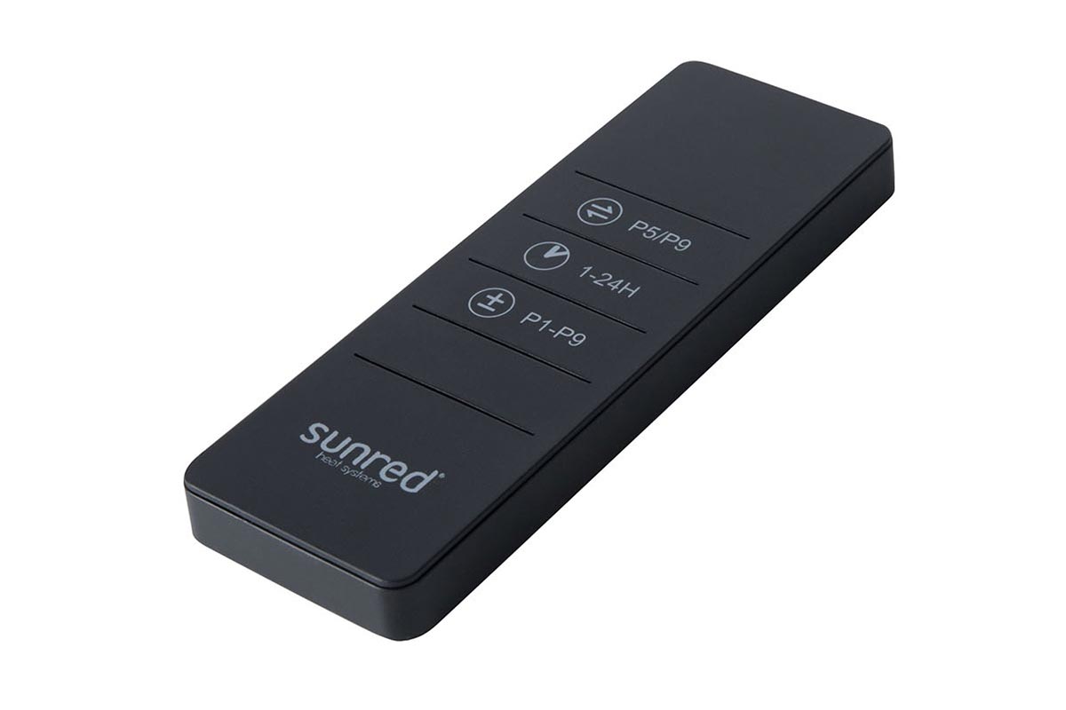 Iestatiet vēlamo siltuma līmeni vai izmantojiet taimeri tieši SUNRED® lietotnē vai ar komplektā iekļauto tālvadības pulti. Sekundes laikā iegūstiet patīkamu siltumu — ērti un pašsaprotami.